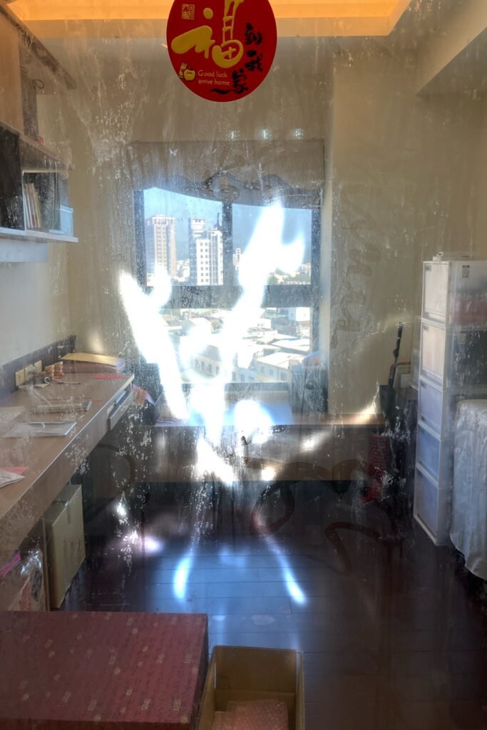 這是不對襯的,表示能量上有問題加上大面玻璃窗雖然採光好,但是個光煞